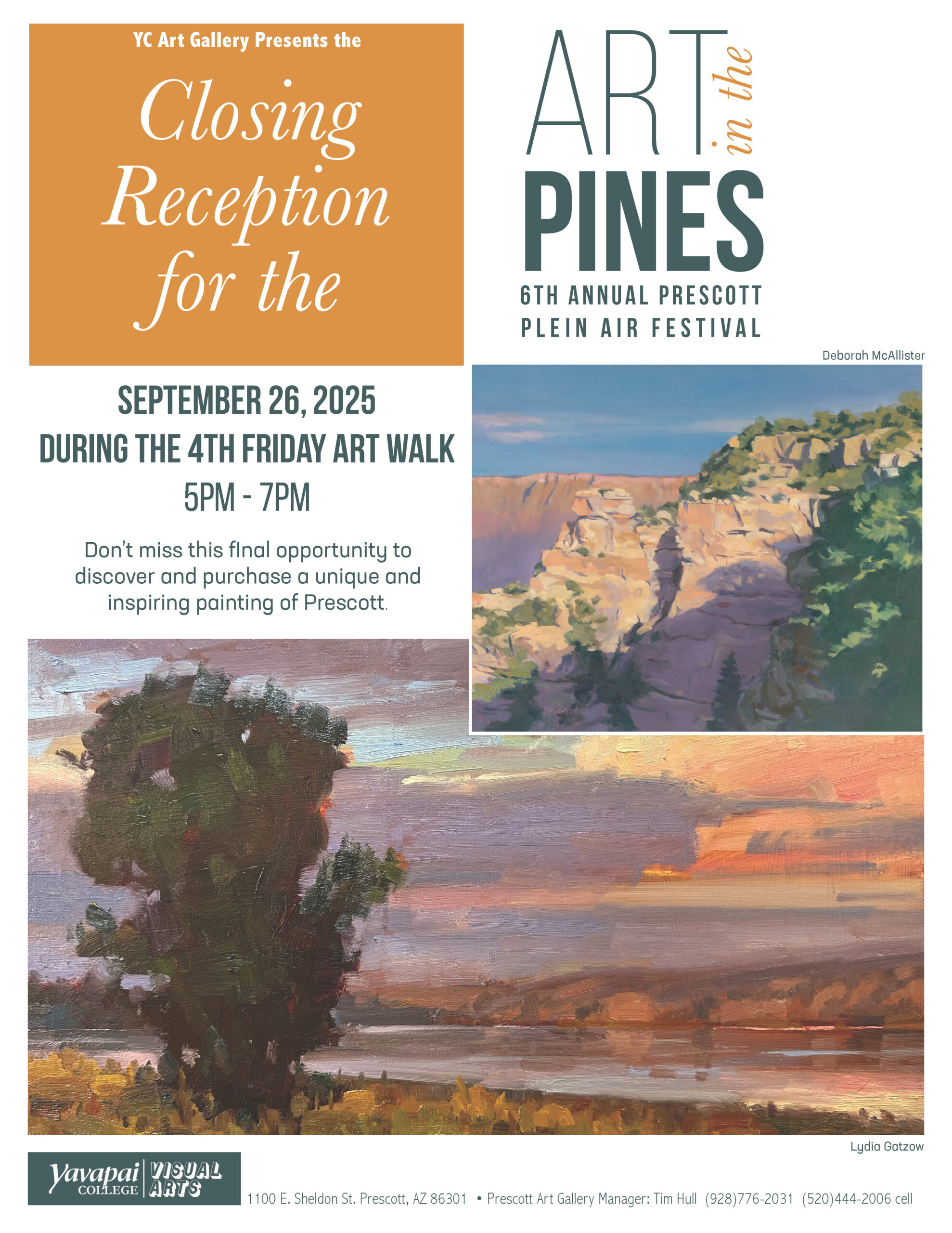 ![]() 🎨 Art in the Pines – 6th Annual Prescott Plein Air Festival Closing Reception Join us for the grand finale of this year’s Prescott Plein Air Festival! Celebrate the beauty of Prescott through inspiring plein air paintings created by talented artists during the festival. 🗓 Date Friday, September 26, 2025 ⏰ Time 5:00 – 7:00 […] |